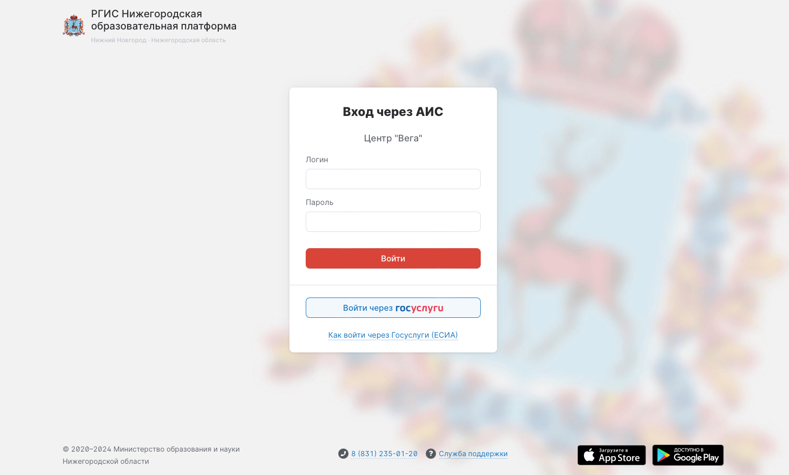 1. Приоритетным входом в личный кабинет считается "Вход через РГИС Нижегородская образовательная платформа".